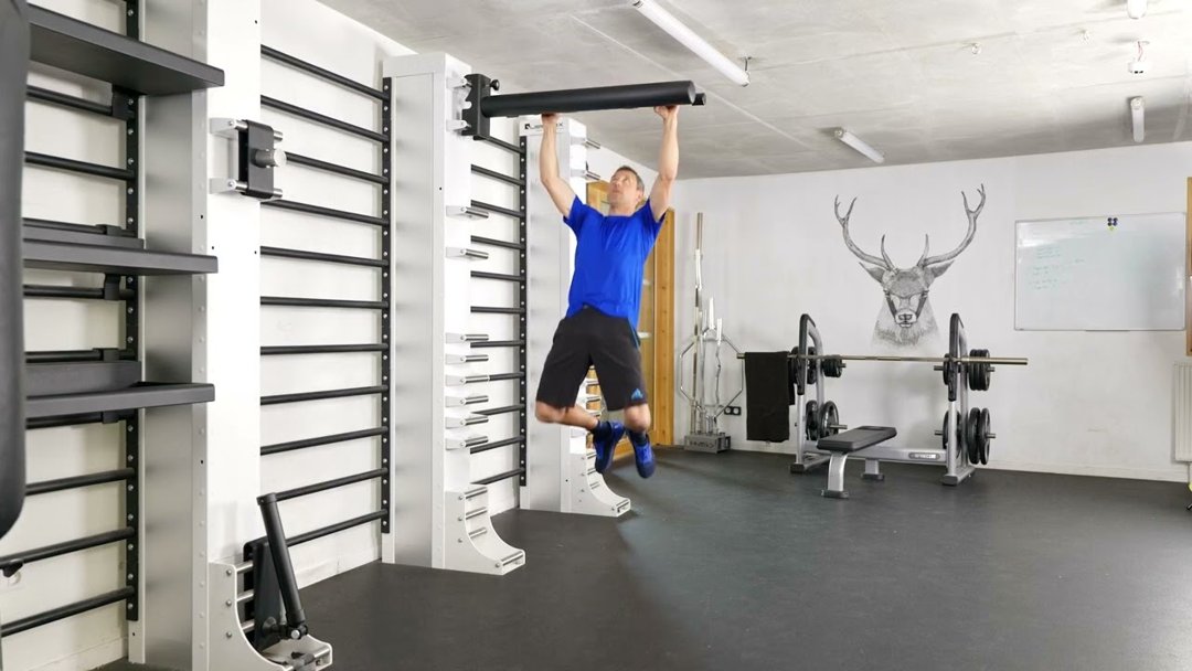 Attrape la barre en pronation, mains à largeur d’épaules. Tends les bras et suspends-toi complètement. Tire avec le dos en amenant le menton au-dessus de la barre, puis redescends en contrôlant jusqu’à bras tendus. Garde le buste ouvert et les coudes vers l’arrière.
